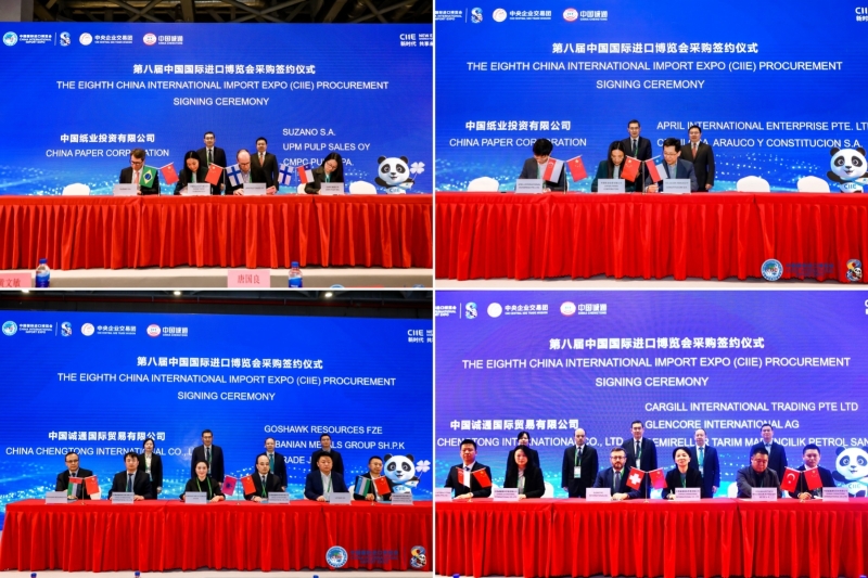 6日下午,中国诚通交易分团在国家会展中心举行采购签约仪式,唐国良出席并致辞。他表示,中国诚通认真贯彻习近平总书记关于进博会“越办越好”的重要指示,连续八年组织交易分团参会,将与全球合作伙伴进一步传承友好、深化合作,共同谱写开放发展新篇章。签约仪式上,中国纸业、诚通国贸分别与来自智利、巴西、俄罗斯、乌兹别克斯坦、哈萨克斯坦、老挝、新加坡、土耳其、中国香港等16个国家和地区的19家客商签署29项采购协议,签约金额合计达14.7亿美元。