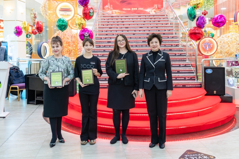 △在友谊商城25周年纪念活动上为“最佳店铺”获奖代表颁奖