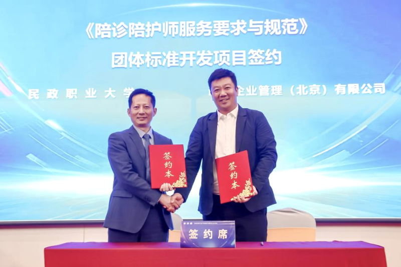 会上,诚通人力旗下诚通企业管理(北京)有限公司与民政职业大学正式签署《陪诊陪护师服务要求与规范》团体标准开发合作协议。双方将携手推进养老服务人才标准化建设,合作共建产教融合实训基地,以实际举措助推行业专业化进程。