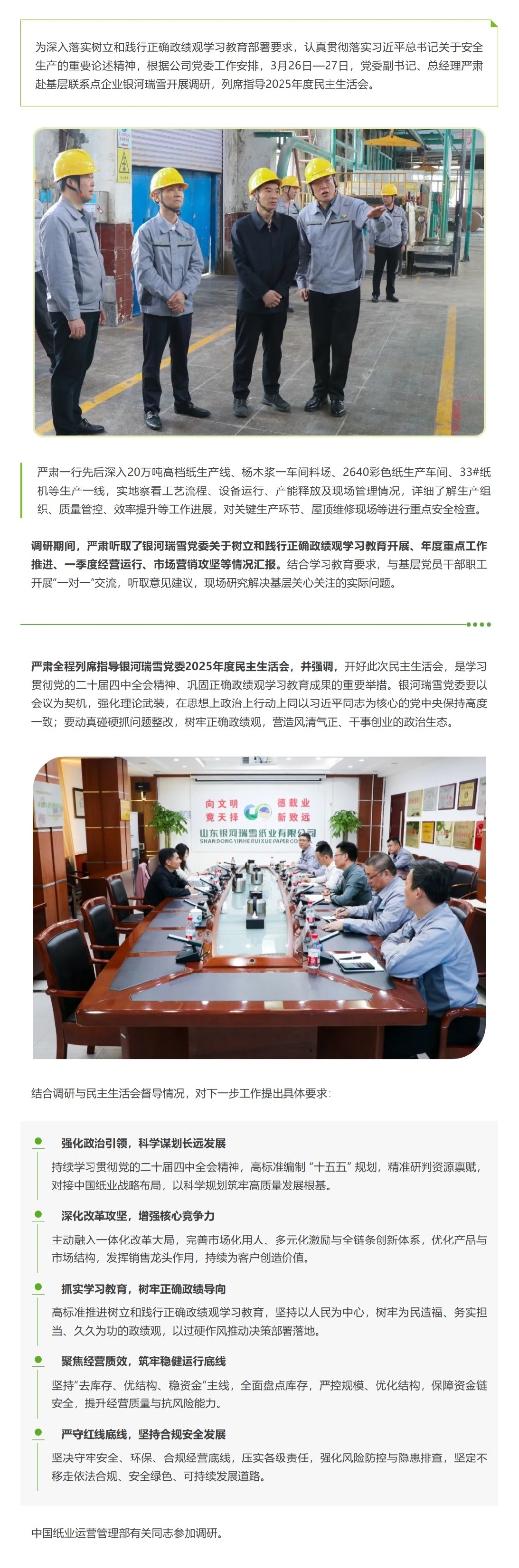 严肃赴银河瑞雪开展调研并督导2025年度民主生活会
