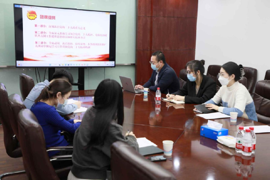 2023年1月17日,为深入学习贯彻党的二十大精神,持续推进中商青年精神素养提升工程工作走深走实,中商集团团委组织开展党的二十大精神学习宣讲活动,引导公司广大青年深刻领悟“两个确立”的决定性意义,增强“四个意识”、坚定“四个自信”、做到“两个维护”,自觉把思想统一到党的二十大精神上来,把力量凝聚到企业各项生产经营任务上来,推动中商实现高质量发展。