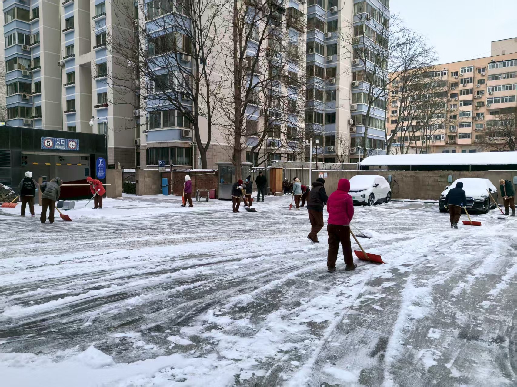 中商大厦全员协力清除2026年首场积雪