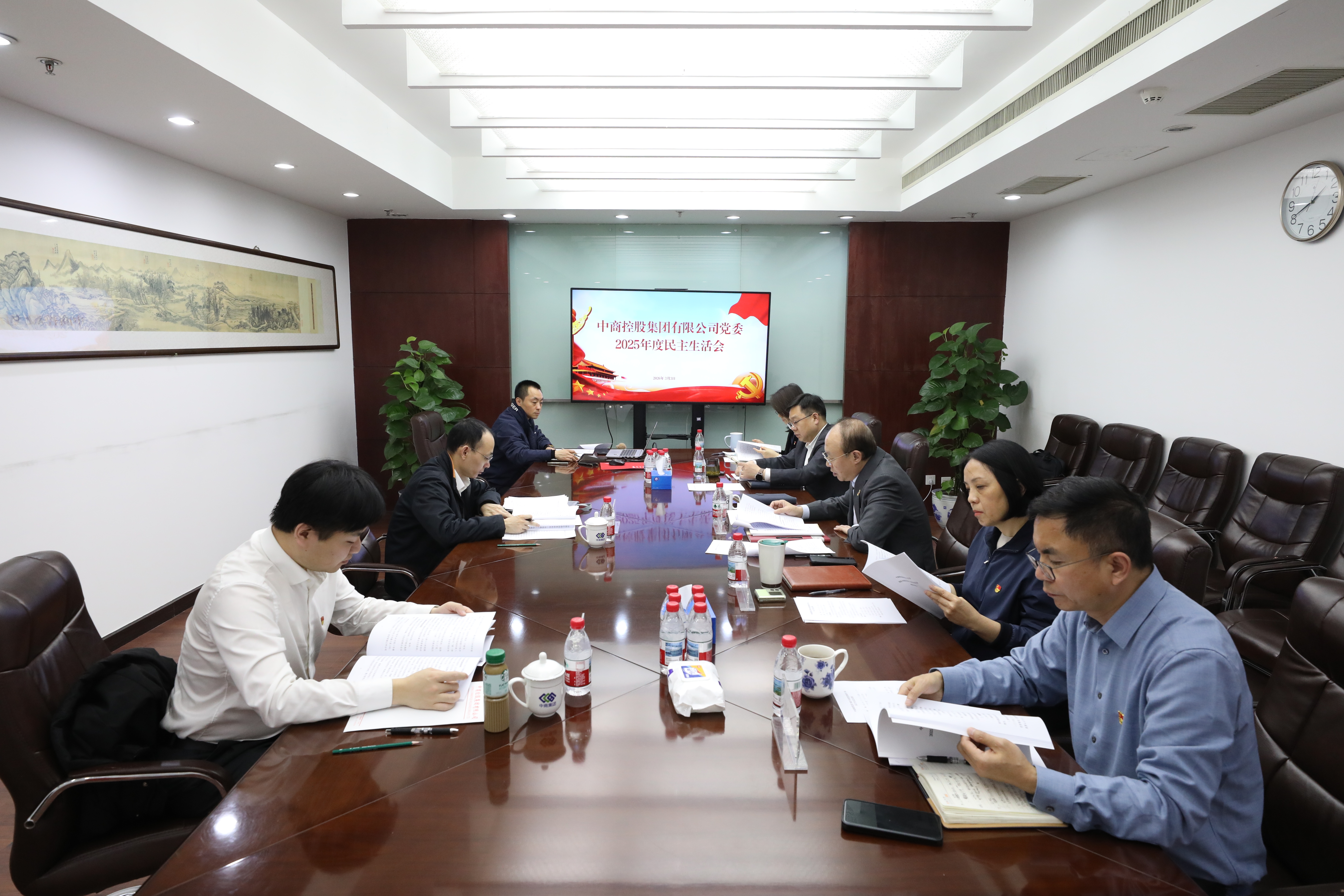 3月3日,中商集团党委召开2025年度领导班子民主生活会,深入学习贯彻习近平新时代中国特色社会主义思想,全面贯彻落实党的二十届四中全会精神,以打攻坚战、持久战的决心和恒心,锲而不舍落实中央八项规定精神,推进作风建设常态化长效化,以优良作风凝心聚力、真抓实干,奋力开创中国式现代化建设新局面。集团党委第二督导组到会指导,中商集团党委书记、董事长张雷主持会议并作总结讲话,党委领导班子成员参加会议。